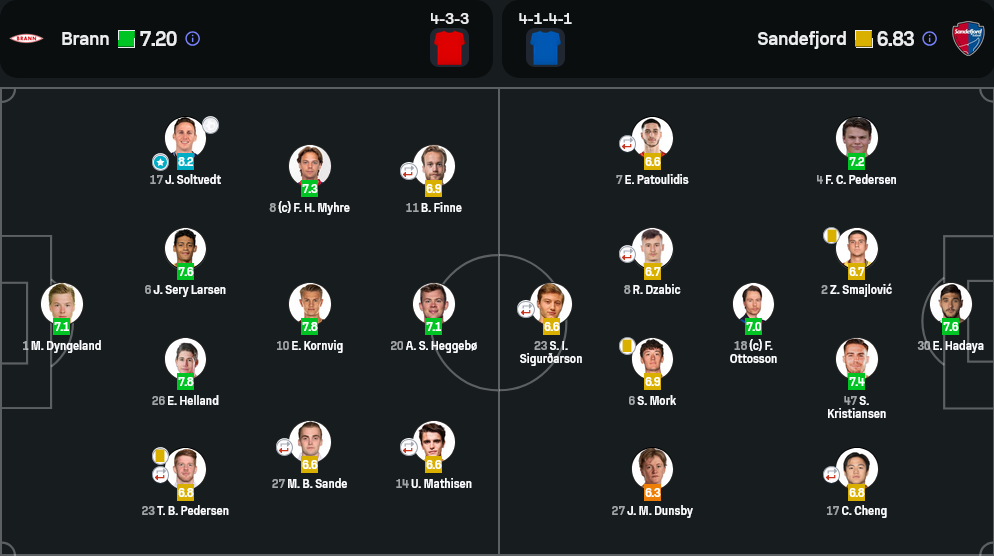 เกมนี้ บรานน์ มาในระบบ 4-3-3 ที่เน้นการเซ็ตเกมจากแนวลึกแล้วต่อบอลเข้าสู่พื้นที่อันตรายทางฝั่งซ้ายเป็นหลักโดยอาศัยความเร็วของ โซลท์เวดต์ ที่ขยับได้ดีทั้งครอสและตัดเข้าใน แดนกลางใช้ คอร์นวิก คุมจังหวะเกมซึ่งถือว่าทำได้ดีมาก การเข้าทำของบรานน์หลากหลาย ยิงถึง 24 ครั้ง แสดงถึงความดุดัน ขณะที่ฝั่ง ซานเดฟยอร์ด วาง 4-1-4-1 และเลือกตั้งรับเป็นหลักโดยมีมิดฟิลด์อย่าง อ็อตโตสสัน กับ สมัยโลวิช คอยตัดเกม แต่เกมรุกไม่สามารถเจาะแนวรับเจ้าบ้านได้เลยเพราะขาดการประสานที่แม่นยำ สรุปแล้วเมื่อ วิเคราะห์บอล ตามแท็กติก ถือว่าบรานน์คุมเกมทั้งรับและรุกได้ครบเครื่อง แม้กว่าจะเจาะได้ต้องรอถึงท้ายเกม