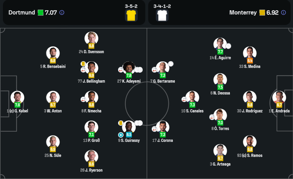 - กองหน้า: คาริม อเดเยมี่ (7.8), เสร์อู กีราสซี่ (8.5) ⭐