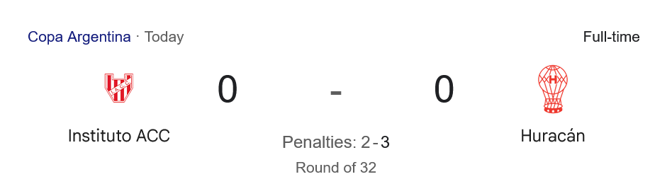ชัยชนะในเกมนี้ส่ง ฮูราแคน ผ่านเข้าสู่รอบ 32 ทีมสุดท้ายของโคปา อาร์เจนตินา ส่วนอินสติทูโตต้องกลับไปโฟกัสในลีกต่อหลังตกรอบไปแบบน่าเสียดาย