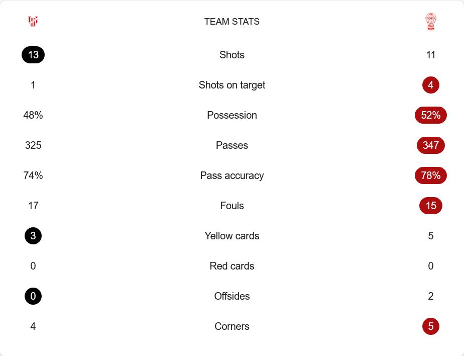 เกมนี้เต็มไปด้วยความสูสี อินสติทูโตครองบอล 48% ยิงรวม 13 ครั้ง แต่เข้ากรอบเพียงครั้งเดียว ขณะที่ฮูราแคนครองบอล 52% ยิง 11 ครั้งเข้ากรอบ 4 ครั้ง ทั้งสองทีมมีเปอร์เซ็นต์การผ่านบอลและความแม่นพอๆ กัน อินสติทูโตฟาวล์มากถึง 17 ครั้ง ส่วนฮูราแคนก็ไม่น้อยหน้า 15 ครั้ง เกมตึงเครียดจนจบ
