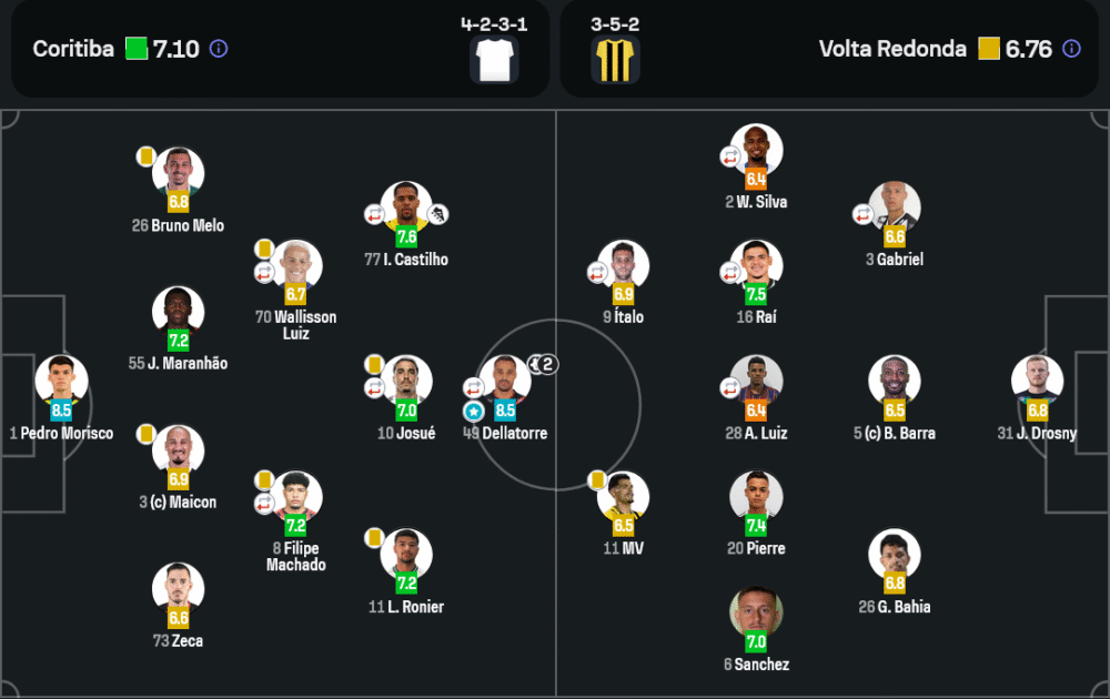 เดลาตอร์เร่ (กอริติบ้า) รับคะแนนสูงสุด 8.5 ด้วยสองประตูสำคัญและฟอร์มที่ดุดันเป็นหัวใจเกมรุกให้ทีม