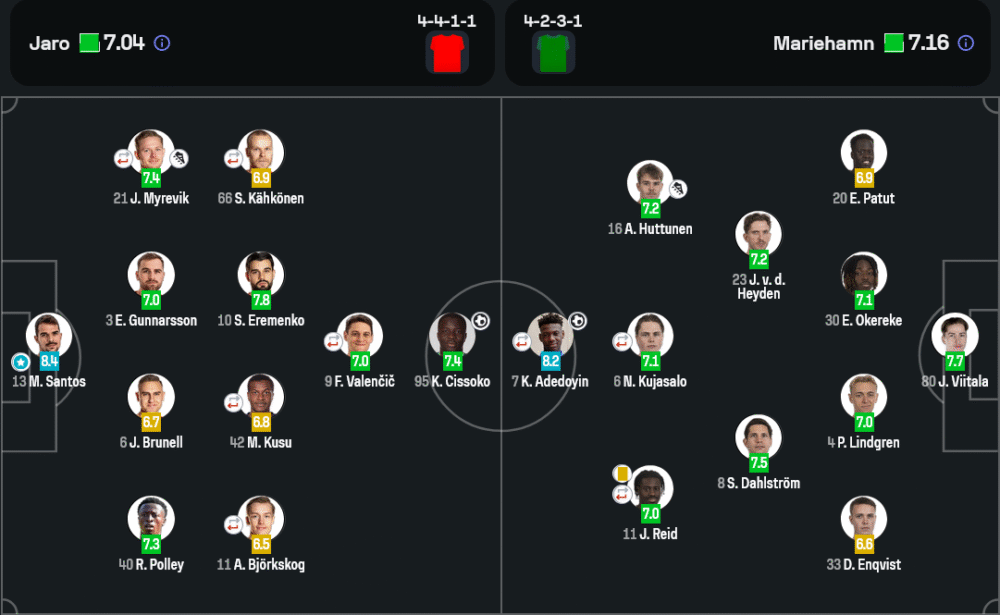 นักเตะโดดเด่น: คอเรเด้ อเดโดยิน (8.2), เซบาสเตียน ดาห์ลสตรอม (7.5), โยฮันเนส วีทาล่า (7.7)
