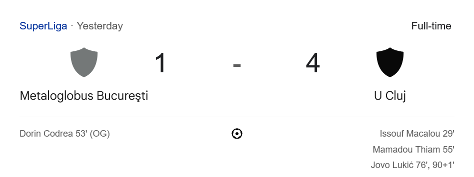 ฟุตบอล โรมาเนีย ลีกา1 ค่ำคืนที่ผ่านมา บ้านกีฬา พาเกาะติด ผลบอลสด นัดเปิดฤดูกาลระหว่าง เมต้าล๊อกโลบูส บูคาเรสต์ เปิดบ้านรับการมาเยือนของ ยูนิเวอร์ซิตาเตีย คลูจ์ เกมนี้ทีมเยือนโชว์ความเหนือชั้น ไล่ถล่มเจ้าถิ่น 4-1 ส่งสัญญาณชัดว่าพวกเขามาเพื่อลุ้นแชมป์เต็มตัว