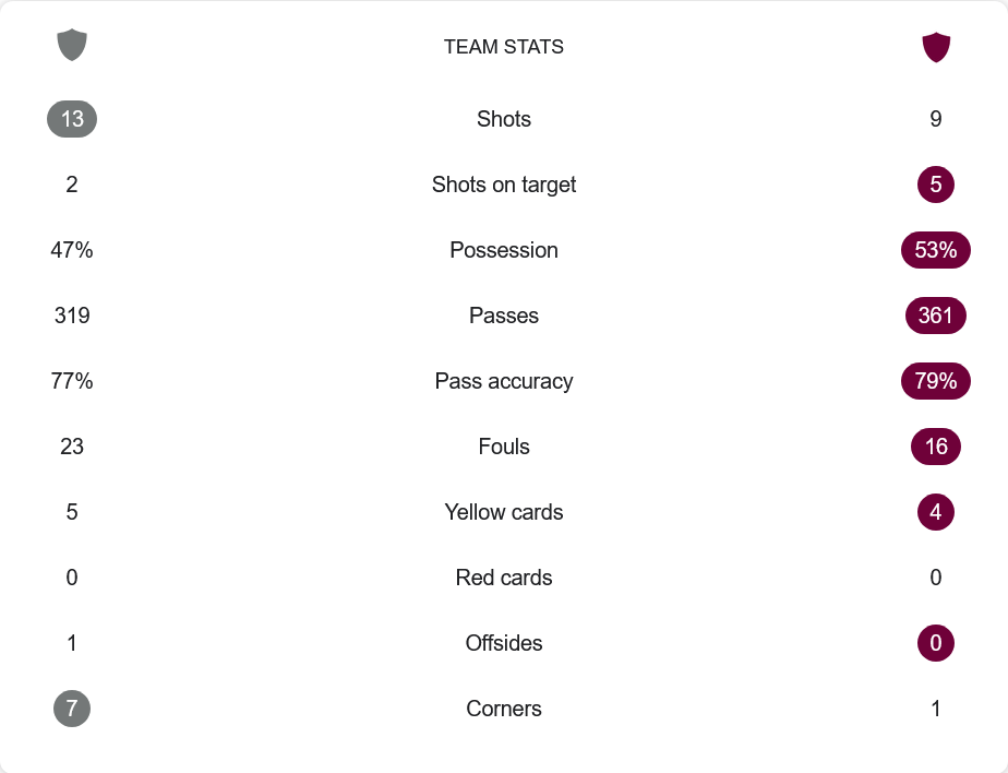 แม้อาร์เจส ปีเตสติจะครองบอลได้ถึง 47% และมีโอกาสยิงถึง 13 ครั้ง แต่ยิงเข้ากรอบแค่ 2 ครั้งเท่านั้น ขณะที่ราปิดครองบอลมากกว่านิดหน่อยที่ 53% ยิง 9 ครั้ง แต่เข้ากรอบถึง 5 และเปลี่ยนเป็น 2 ประตูสำคัญ จ่ายบอลและความแม่นยำของทั้งสองทีมใกล้เคียงกัน แต่ราปิดสร้างโอกาสอันตรายได้มากกว่าและคุมจังหวะได้เหนือกว่า