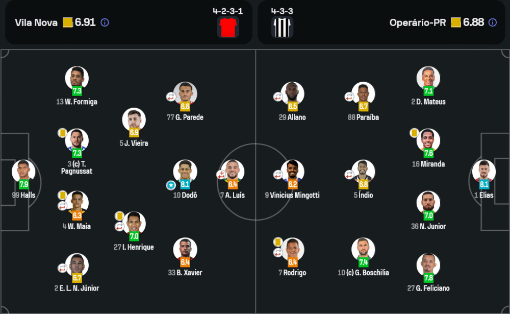 กองหน้า: อัลลาโน่ (6.5), ปาราอิบา (6.7), วินิซิอุส มิง็อตติ (6.2)