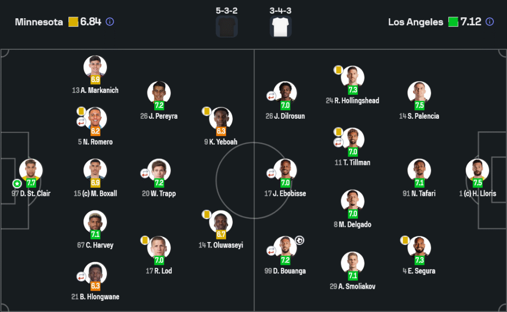 เดย์น เซนต์แคลร์ นายด่านของมินนิโซตาคือผู้เล่นยอดเยี่ยมในเกมนี้ แม้ทีมจะพ่ายไป 0-1 แต่เขาโชว์ฟอร์มเซฟได้หลายครั้ง สำคัญต่อการรักษาสกอร์ไม่ให้ขาดมากกว่านี้ คะแนนความสามารถ 7.7 สะท้อนผลงานที่ยอดเยี่ยมของเขา