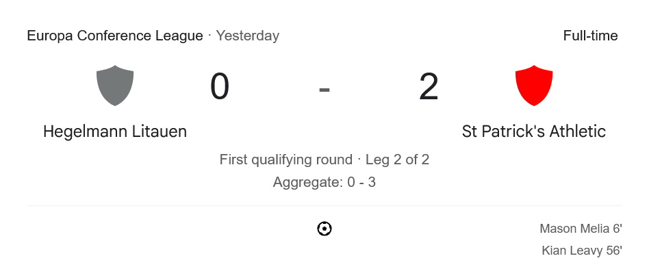 บ้านกีฬาเกาะติดศึกยูฟ่ายูโรปาคอนเฟอเรนซ์ลีก รอบคัดเลือก รอบแรก เลกสอง เมื่อคืนนี้ เฮเกลมันน์ ทีมแกร่งจากลิทัวเนีย เปิดบ้านเจอศึกหนักกับ เซนต์ แพตทริคส์ แอธเลติก จากไอร์แลนด์ ผล บ้านผลบอล ออกมาสุดมันส์ ทีมเยือนบุกสอนเชิงด้วยสกอร์ 2-0 รวมผลสองนัด เซนต์ แพตทริคส์ ชนะขาดลอย 3-0 ผ่านเข้ารอบต่อไปได้อย่างเหนือชั้น