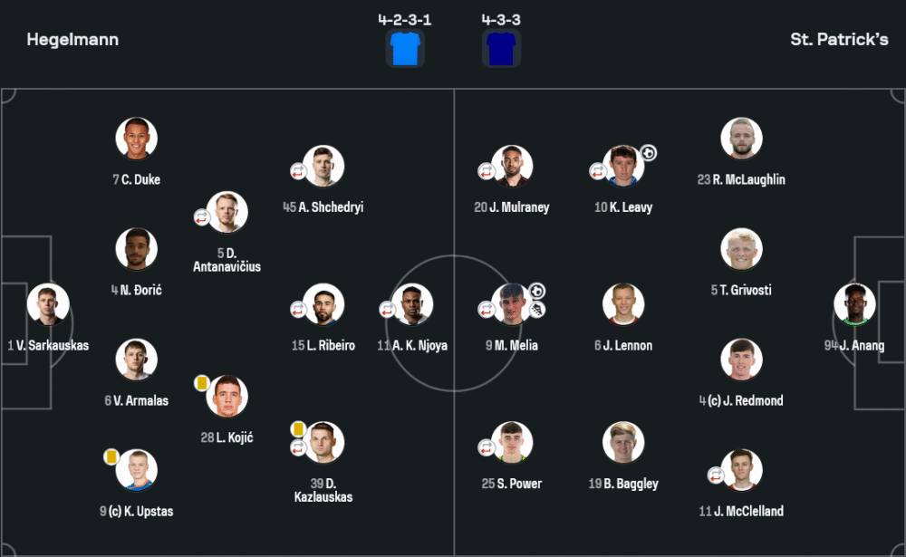 เซนต์ แพตทริคส์ ครองบอลได้ใกล้เคียงกับเจ้าบ้าน แต่โอกาสยิงเข้ากรอบมากกว่าและเฉียบคมกว่า เฮเกลมันน์แม้พยายามยิงหลายครั้งแต่ติดบล็อกและขาดความแม่นยำ ขณะที่เกมรับยังเสียสมาธิในจังหวะสำคัญ