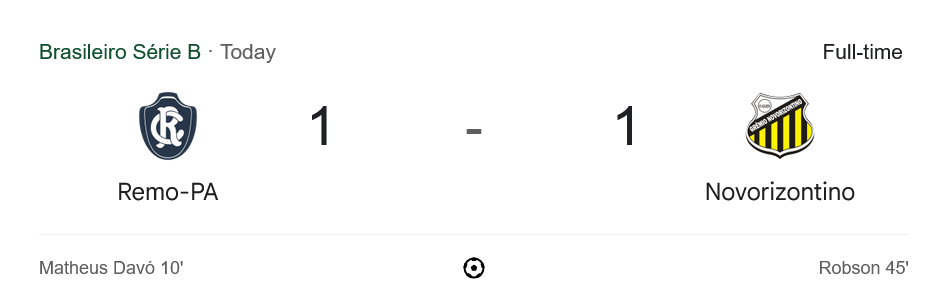 ศึก คัมปิโอนาโต บราซิเลียโร ซีรีบี ค่ำคืนนี้เป็นอีกหนึ่งแมตช์ที่แฟนๆ ติดตามผลผ่าน บ้านผลบอล กันอย่างลุ้นระทึก เรโม เบเลม เปิดบ้านต้อนรับการมาเยือนของ เกรมิโอ โนโวริซอนติโน่ เกมนี้ทั้งสองทีมต่างสู้กันอย่างดุเดือดก่อนจบลงด้วยผลเสมอ 1-1 แบ่งแต้มไปคนละหนึ่งคะแนน