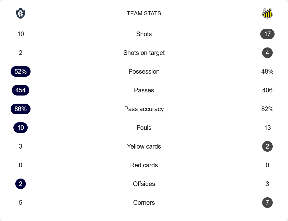 ตลอดทั้งเกม เรโม ครองบอลได้ 52% ยิงรวม 10 ครั้ง เข้ากรอบ 2 ครั้ง ผ่านบอลแม่นยำ 86% ด้าน โนโวริซอนติโน่ ครองบอลเพียง 48% แต่มีโอกาสยิงมากกว่า 17 ครั้ง เข้ากรอบ 4 ครั้ง และผ่านบอลแม่นยำ 82% ฟาวล์รวมกัน 23 ครั้ง เกมนี้จึงเต็มไปด้วยความเข้มข้นทั้งเกมรุกและเกมรับ