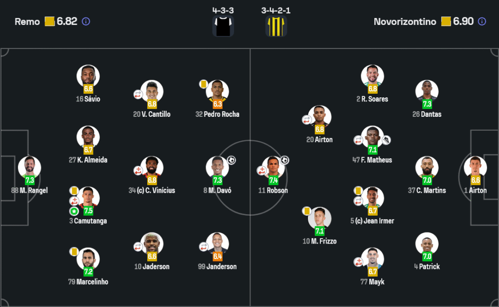 ครึ่งแรก เรโม เปิดฉากมาแบบร้อนแรงเพียงนาทีที่ 10 เจ้าถิ่นก็ได้ประตูออกนำก่อนจากลูกยิงของ มาเธอุส ดาวอ ฟากทีมเยือนยังไม่ยอมง่ายๆ พยายามบุกโต้กลับอย่างต่อเนื่องจนกระทั่งช่วงทดเจ็บครึ่งแรกนาที 45 โรบสัน สวมบทฮีโร่ยิงตีเสมอให้ โนโวริซอนติโน่ กลับมาสู่เกม ครึ่งแรกจบด้วยสกอร์ 1-1