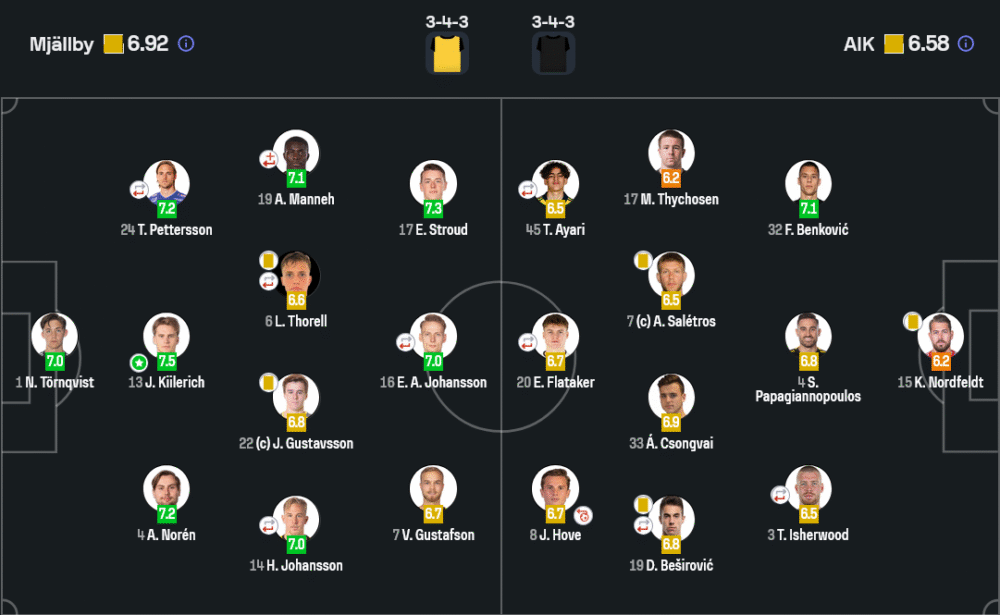 นักเตะโดดเด่น: ยาคอบ คีเลริช (7.5), เอลเลียต สเตราด์ (7.3), อักเซล โนเรน (7.2)