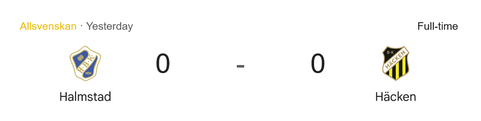 จาก ตารางบอล นัดถัดไป ฮัคเค่นมีศึกใหญ่ไปเยือนอันเดอร์เลชท์ในยูโรปาลีกวันที่ 25 กรกฎาคม ก่อนกลับมาเปิดบ้านพบจูร์การ์เด้นวันที่ 27 กรกฎาคม ส่วนฮาล์มสตัดมีโปรแกรมเยือนกาอิสในวันที่ 26 กรกฎาคม