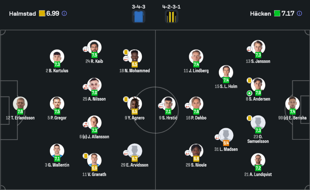 ครึ่งแรกเริ่มมาเป็นฮัคเค่นครองเกมทันทีด้วยเปอร์เซ็นต์ครองบอลกว่า 68% แต่แนวรับของฮาล์มสตัดเหนียวแน่นสุดๆ ผู้รักษาประตู ทิม เออร์ลันด์สสัน โชว์ซูเปอร์เซฟช่วยทีมได้หลายครั้ง ด้านฮาล์มสตัดมีจังหวะสวนกลับเล็กน้อยแต่ไม่จบสกอร์ จบครึ่งแรกแบบไร้สกอร์