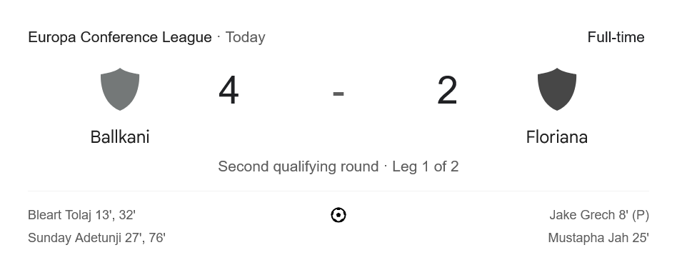 บ้านกีฬา พาแฟนบอลเกาะติด ผลบอลสด ยูฟ่ายูโรปาคอนเฟอเรนซ์ลีก รอบคัดเลือกรอบสอง เลกแรก เมื่อคืนที่ผ่านมา เคเอฟ บอลคานี เปิดบ้านจัดหนักเอาชนะ โฟลเรียน่า เอฟซี จากมอลตาไปอย่างดุเดือด 4-2 ในเกมที่เต็มไปด้วยความเข้มข้นและประตูสวยๆ ให้แฟนบอลได้เฮกันสนั่น