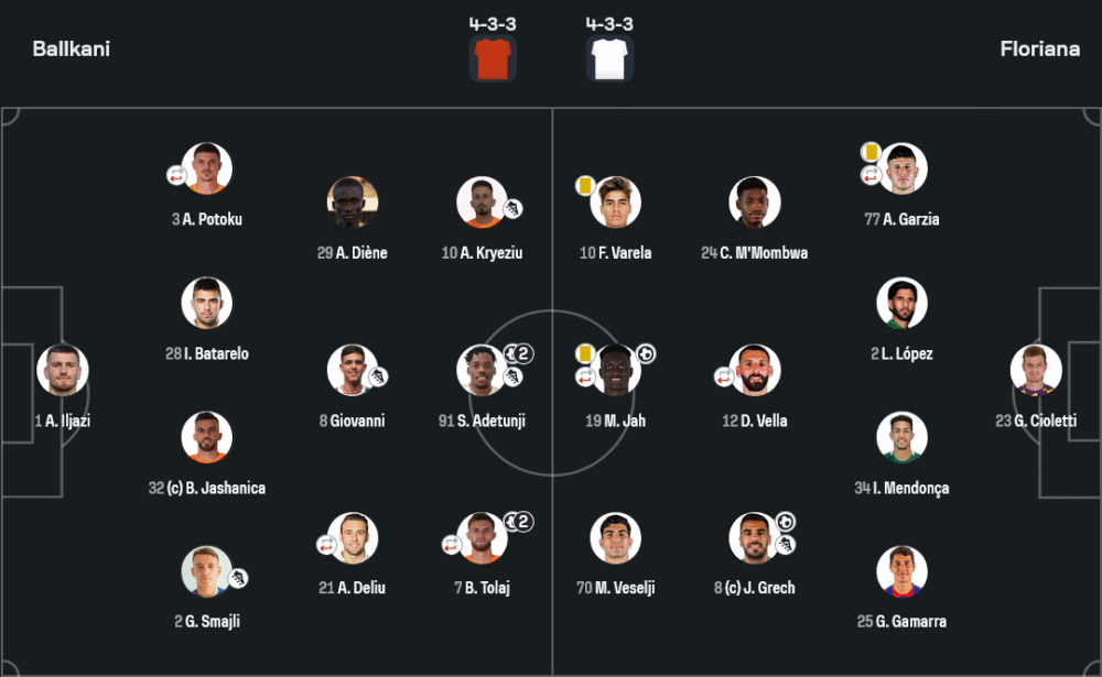 - กองหลัง: G. Smajli, B. Jashanica (c), A. Deliu, A. Potoku