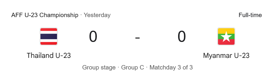 บ้านกีฬา รายงาน ผลบอลสด จากศึก AFF U23 Championship เมื่อคืนที่ผ่านมา ทีมชาติ ไทยยู-23 ดวลเดือดกับ เมียนมาร์ยู-23 จบลงด้วยสกอร์ 0-0 แม้ทัพช้างศึกจะครองเกมได้มากกว่าแต่จังหวะจบสกอร์ไม่เฉียบขาดพอ ทำให้แบ่งกันไปทีมละแต้มในรอบแบ่งกลุ่มแมตช์สุดท้าย