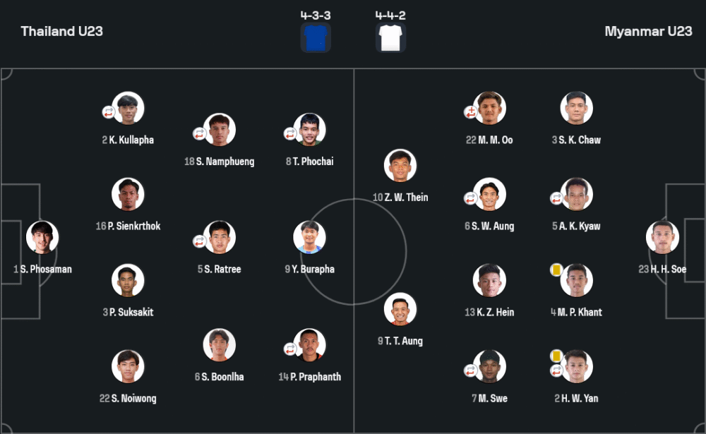 เกมนี้หากวิเคราะห์บอลเชิงลึกจะเห็นว่าไทยยู-23 คุมแดนกลางได้ตลอดทั้งเกม ด้วยการวางแผนให้สองฟูลแบ็คเติมเกมสูงสนับสนุนการขึ้นบอลด้านข้างเพื่อเปิดให้กองหน้าสอดเข้าทำ แต่จังหวะสุดท้ายยังติดบล็อกหรือยิงหลุดกรอบไปเอง ด้านเมียนมาร์จัดระบบรับเป็นแนว 4-4-2 ชัดเจน รอจังหวะสวนกลับเป็นหลักและสร้างความลำบากให้ไทยพอสมควรแม้โอกาสยิงจะน้อยกว่า