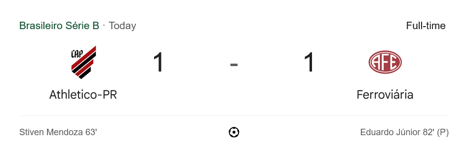 ศึกคัมปิโอนาโต บราซิเลียโร่ ซีรีบี ค่ำคืนที่ผ่านมา บ้านกีฬา เกาะติด ผลบอลสด สุดมันจากอารีน่าดาไลท์ แอตเลติโก้ พาราเนนเซ่ ทำได้เพียงเปิดบ้านเสมอกับ เฟอร์โรเวียเรีย เอสพี แบบสุดเดือด 1-1 หลังนำก่อนจาก สตีเวน เมนโดซ่า แต่มาโดนตีเสมอท้ายเกมจากลูกจุดโทษของ เอ็ดวาร์โด้ จูเนียร์ ทำให้เจ้าถิ่นพลาดสามแต้มสำคัญแบบน่าเสียดาย