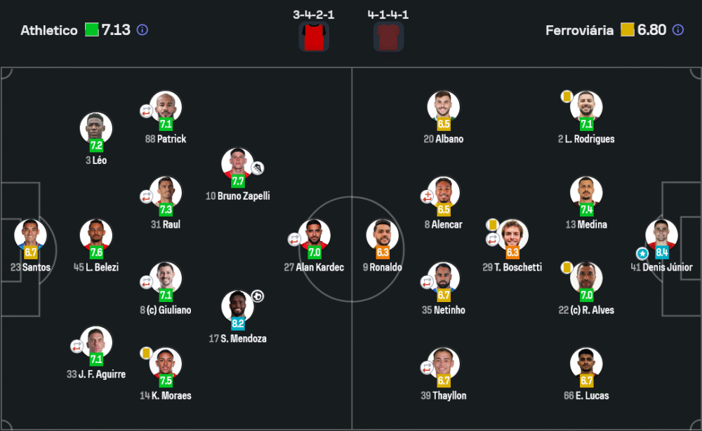 นักเตะโดดเด่น: เดนิส จูเนียร์ (8.4), เมดิน่า (7.4), จูนินโญ่ (7.1)