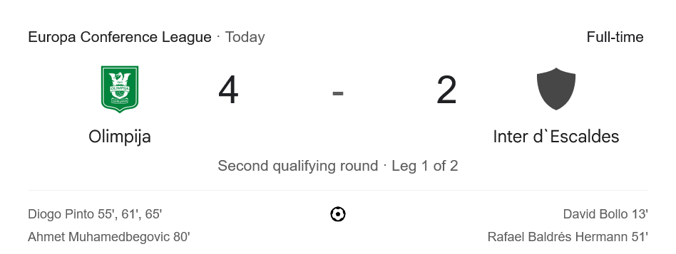 จาก : ผลบอลสด ยูฟ่ายูโรปาคอนเฟอเรนซ์ลีก ระหว่าง เอ็นเค โอลิมปิจา ลจุบจาน่า 4-2 อินเตอร์ คลับ เอสคัลเดส วันนี้ 24/7/68 – บ้านกีฬา