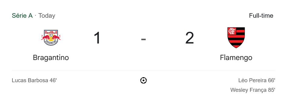 จาก : ผลบอลสด กังเปโอนาตู บราซีเลย์รู แซรียีอา ระหว่าง บรากันติโน้ 1-2 ฟลาเมงโก วันนี้ 24/7/68 – บ้านกีฬา