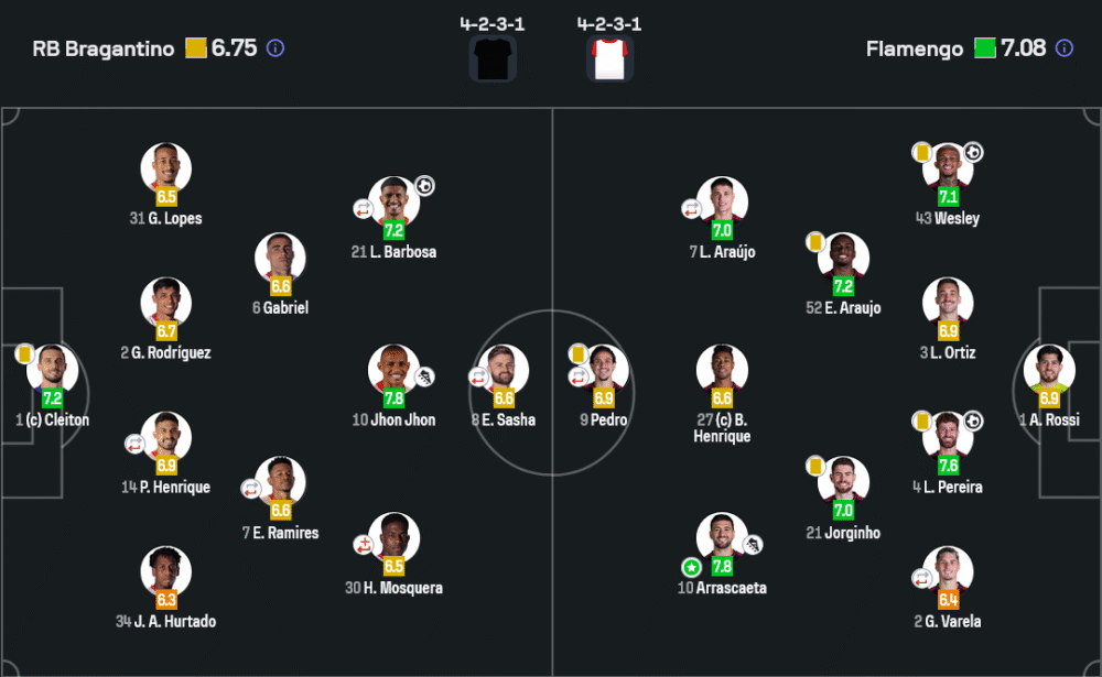 • กองหลัง: กีเยร์โม วาเรล่า (6.4), เลโอ เปเรย์รา (7.6), ลูคัส ออร์ติซ (6.9), เวสลี่ย์ (7.1)