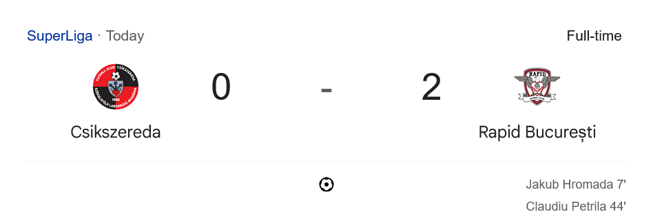 ชัยชนะในเกมนี้ส่ง ราปิด บูคาเรสต์ ขึ้นนำเป็นจ่าฝูงของลีกอย่างเต็มภาคภูมิ มี 7 แต้มจาก 3 นัด ยิงได้ 5 เสียแค่ 1 ถือว่าเปิดฤดูกาลได้น่าประทับใจ ขณะที่ Csíkszereda ยังไม่ชนะใครเลยจาก 3 นัด มีแค่ 1 แต้ม รั้งอันดับ 15 และเสียไปถึง 10 ประตูแล้ว เสี่ยงสูงกับการตกชั้นหากไม่เร่งปรับเกม