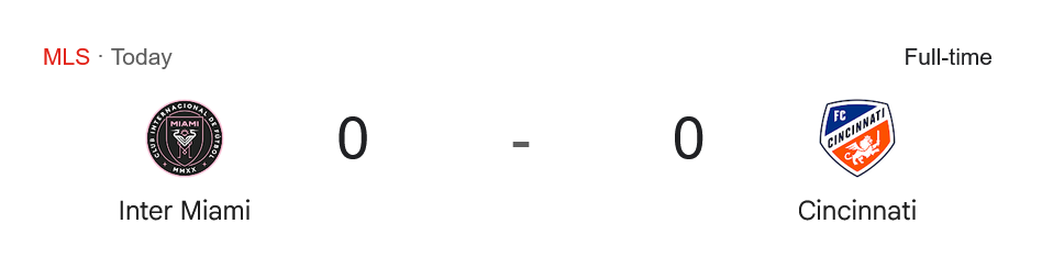 เกมเมเจอร์ลีก ซอกเกอร์ (MLS) ประจำวันนี้ที่สนามดริฟต์ พาร์ค ระหว่าง อินเตอร์ ไมอามี ซีเอฟ เปิดบ้านต้อนรับการมาเยือนของ เอฟซี ซินซินเนติ จบลงด้วยผลเสมอ 0-0 แม้เจ้าถิ่นจะเป็นฝ่ายครองบอลเหนือกว่าและมีโอกาสมากกว่า แต่กลับไม่สามารถเจาะตาข่ายผู้มาเยือนได้ ทำให้แบ่งแต้มกันไปแบบสุดจืด บ้านกีฬา รายงาน ผลบอลสด เกมนี้อย่างละเอียดทุกช็อต พร้อมพาแฟนบอลวิเคราะห์ฟอร์มลึกครบทุกประเด็น