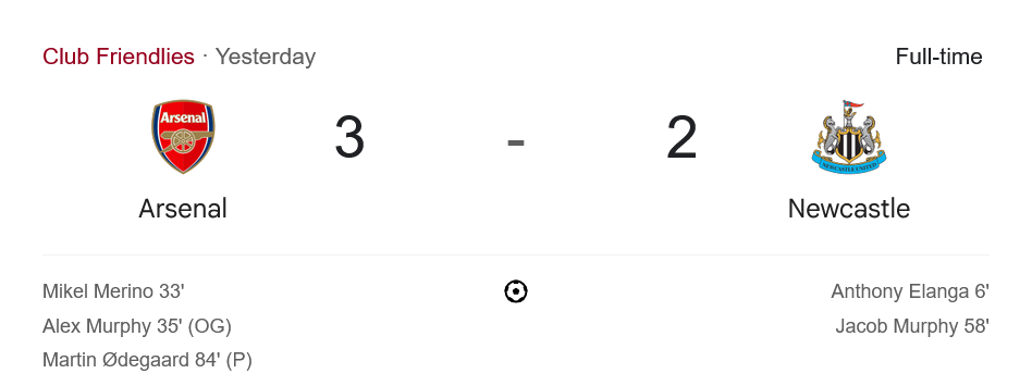 จาก : ผลบอลสด กระชับมิตรสโมสร ระหว่าง อาร์เซนอล 3-2 นิวคาสเซิ่ล ยูไนเต็ด วันนี้ 27/7/68 – บ้านกีฬา