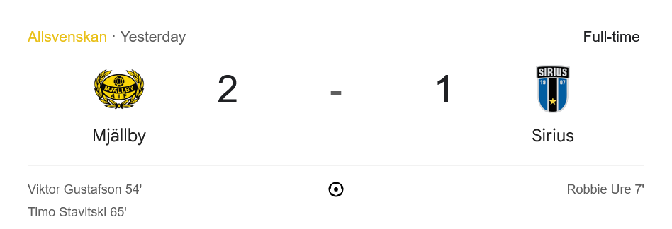 ศึกฟุตบอลออลสเวนส์คานนัดล่าสุดเรียกเสียงฮือฮาเต็มสนาม เมื่อ มอลล์บี้ เอไอเอฟ โชว์ความแกร่งในบ้านพลิกสถานการณ์จากที่ตามหลังในครึ่งแรกกลับมาเอาชนะ ไอเคซิริอุสเอฟเค ไปได้ 2-1 แบบสุดมัน เกมนี้ “บ้านกีฬา” ขอบอกเลยว่าใครพลาดชม ผลบอลสด นัดนี้คือเสียดายสุด ๆ!