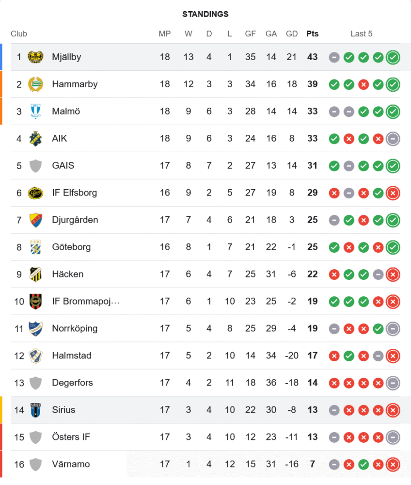 ชัยชนะในเกมนี้ส่งผลให้ มอลล์บี้ เอไอเอฟ รักษาตำแหน่งจ่าฝูงไว้เหนียวแน่น ด้วยผลงานชนะ 13 เสมอ 4 แพ้แค่ 1 มี 43 แต้มจาก 18 นัด ทิ้งห่างอันดับ 2 อย่างฮัมมาร์บี้อยู่ 4 แต้ม ขณะที่ ซิริอุส ยังคงจมโซนท้ายตารางในอันดับ 14 มีเพียง 13 แต้มจาก 17 นัด เท่ากับอันดับ 15 อย่างออสเตอร์ส และเริ่มเจอแรงกดดันตกชั้นอย่างจริงจัง