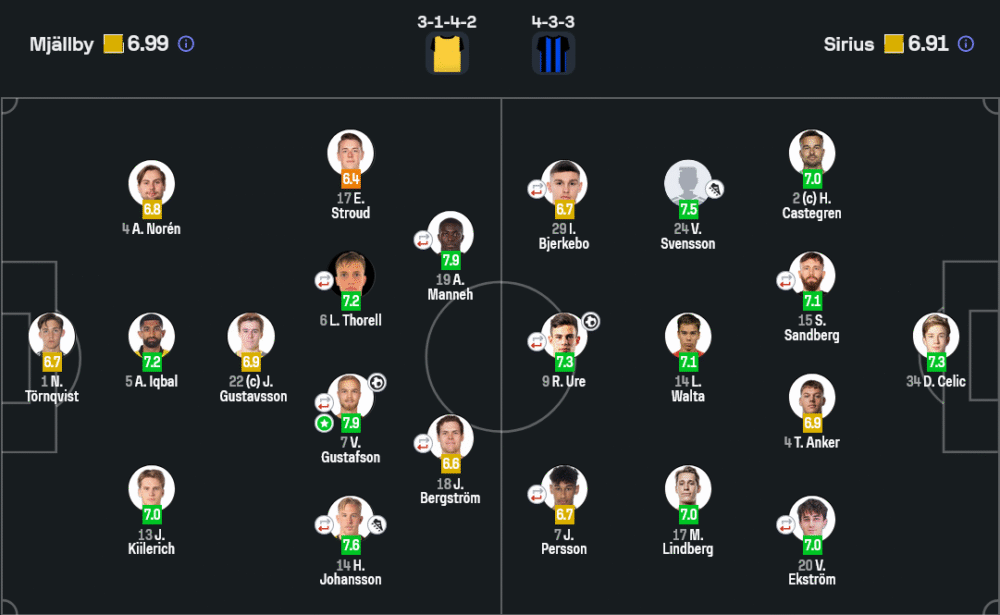 กองกลาง: ลูคัส ทอเรลล์ (7.2), วิคเตอร์ กุสตาฟสัน (7.9), ยาค็อบ เบิร์กสตรอม (6.6)