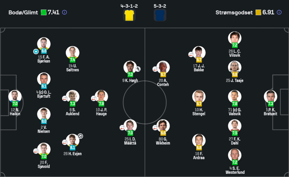 จากการวิเคราะห์บอลในเกมนี้ แผนการเล่น 4-3-1-2 ของโบโด กลิมท์เน้นการครองบอลและควบคุมแดนกลางอย่างชัดเจน เกมรุกพึ่งพาความเร็วและเทคนิคของโฮกกับอีเวเยนที่ประสานงานกันได้อย่างยอดเยี่ยม แดนกลางมีเฮาเก้คอยเชื่อมบอลให้ทีมเดินเกมได้ลื่นไหล ส่วนแผงรับถือว่ายืนตำแหน่งดีมาก โดยเฉพาะแบ็กซ้ายขวาที่เติมเกมได้ตลอดเวลา