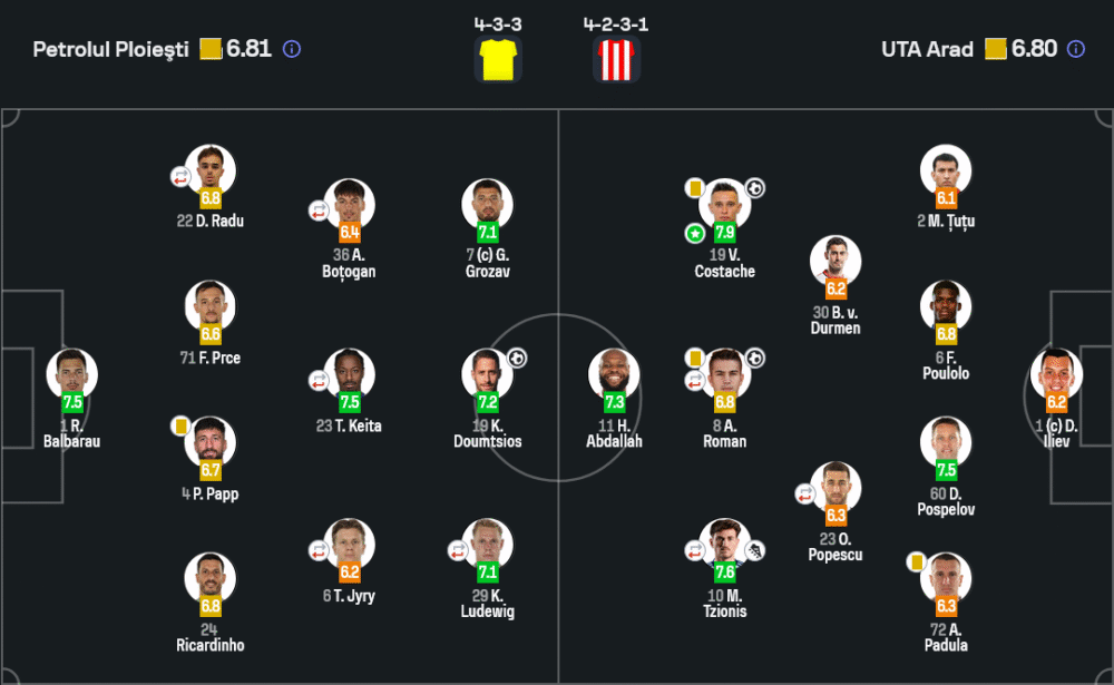 • กองกลาง: คอนสแตนตินอส ดูมต์ซิออส (68′ เอเดรียน ชิกา-โรซ่า), ไทดิเน่ เคต้า (85′ วาเลนติน เกออร์เก้), อันดราส โบโตแกน (72′ บ็อกดาน มาเรียน)