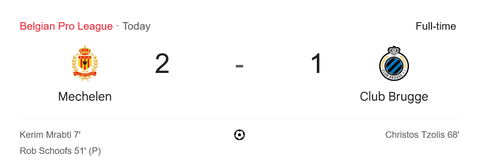 ⏱️ 90+6′ จบเกม เมเชเลน 2-1 คลับ บรูซ