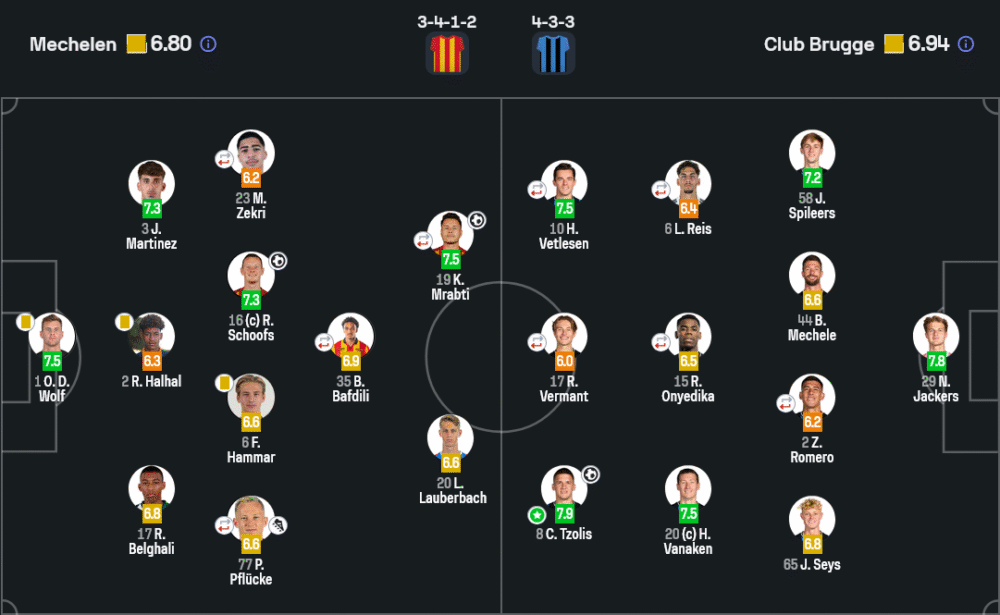 • กองกลาง: ฮันส์ วานาเก้น (7.5), ราฟาเอล ออนเยดิก้า (6.5), โรบิน เวอร์มานต์ (6.0)
