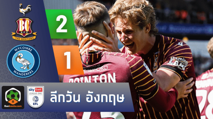 บ้านผลบอล สรุปหลังเกม เปิดหัวสุดระห่ำ! แบรดฟอร์ด ซิตี้ กดสองตุงแรก ก่อนเชือด วีคอมบ์ 2-1 ประเดิม 3 แต้มศึกลีกวัน