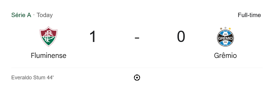 เกมดำเนินไปอย่างสูสีในแดนกลาง แต่โอกาสจะแจ้งยังคงเป็นของเจ้าบ้าน ขณะที่เกรมิโอ้เริ่มหมดแรงในช่วงท้ายเกม และสุดท้ายก็ไม่อาจเปลี่ยนสกอร์ได้ จบเกม บ้านผลบอล ขานชัยให้ฟลูมิเนนเซ่เฉือนชนะ 1-0 คว้า 3 แต้มสุดล้ำค่าต่อหน้าแฟนบอลเต็มสนาม