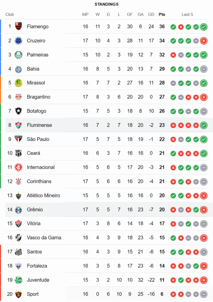 ชัยชนะครั้งนี้ทำให้ ฟลูมิเนนเซ่ ขยับขึ้นสู่อันดับ 8 ของตาราง มีอยู่ 26 แต้มจาก 17 นัด กำลังไล่ล่าโควต้าโซนลาตินทวีป ขณะที่ เกรมิโอ้ ยังคงดิ้นรนอย่างหนัก หล่นไปอยู่ที่อันดับ 14 มี 17 แต้มเท่าเดิม และเริ่มใกล้เขตอันตรายมากขึ้นเรื่อยๆ หากไม่รีบฟื้นตัวในเร็ววัน