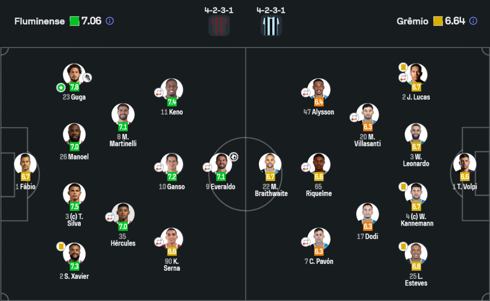 ระบบ 4-2-3-1 ของทั้งสองทีมเน้นความสมดุลในแดนกลาง แต่ ฟลูมิเนนเซ่ ใช้ประโยชน์จากความสามารถเฉพาะตัวของผู้เล่นในการเจาะพื้นที่ริมเส้นได้ดีกว่า ในเกมรับ พวกเขาไม่ปล่อยพื้นที่ให้เกรมิโอ้ได้ใช้ความเร็วแบบถนัด โดยเฉพาะการปิดตายปาวอนและเบรธเวตที่แทบไม่สร้างอันตรายได้เลย