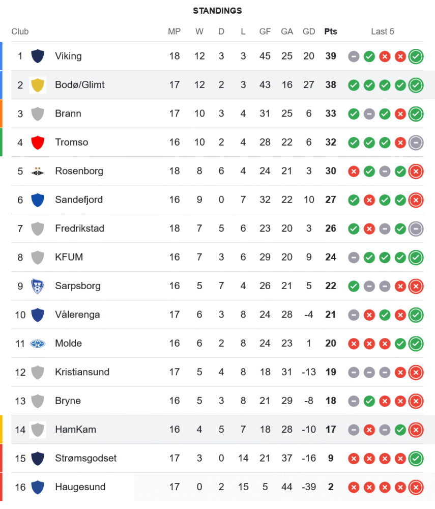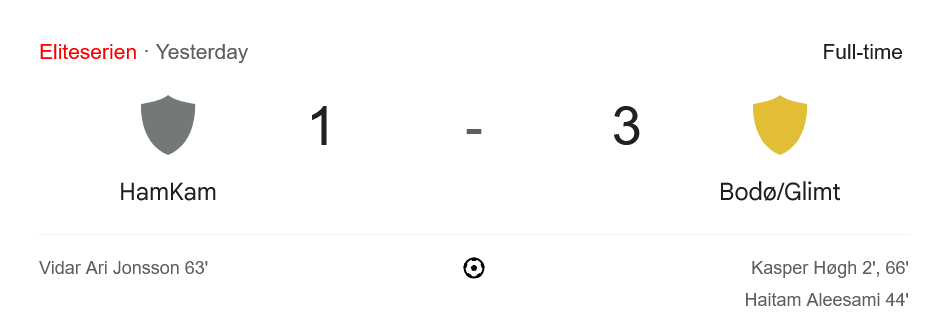 หลังคว้าชัยในเกมนี้ โบโด กลิมท์ เก็บเพิ่มเป็น 38 คะแนนจาก 17 นัด แซงหน้า Viking ขึ้นไปนั่งจ่าฝูงอีกครั้ง โดยทิ้งห่าง 1 แต้ม ส่วน ฮามคาม พ่ายคาบ้านและยังคงอยู่ที่ อันดับ 14 ด้วย 17 คะแนนจาก 16 นัด อยู่ในโซนอันตรายแบบเต็มตัว และต้องเร่งเครื่องเพื่อหนีการตกชั้นในนัดต่อ ๆ ไป
