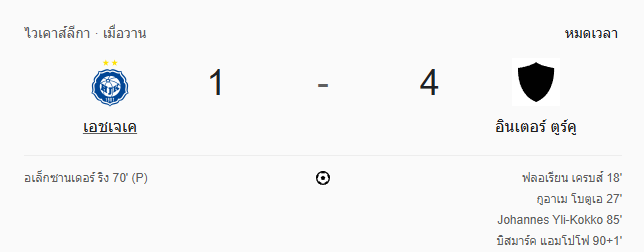 รายงานการแข่งขัน: เอชเจเค 1-4 อินเตอร์ ตูร์คู