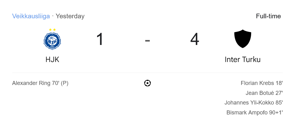 จาก : ผลบอลสด ไวเคาส์ลีกา ระหว่าง เอชเจเค เฮลซิงกิ 1-4 อินเตอร์ ตูร์คู วันนี้ 4/8/68 – บ้านกีฬา