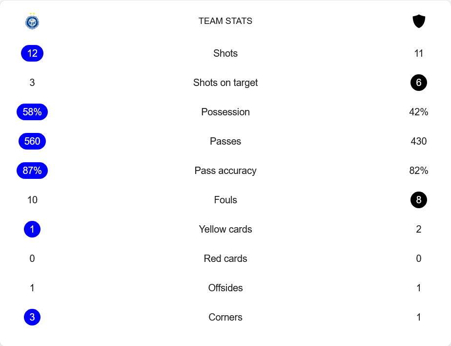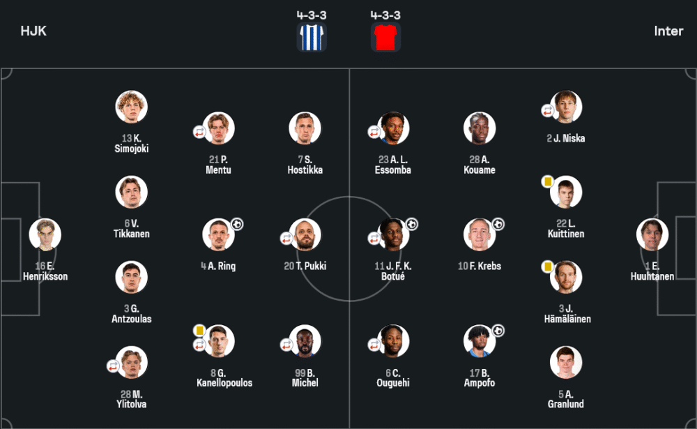 แม้ HJK จะครองบอลได้ถึง 58% ต่อ 42% แต่โอกาสจบสกอร์จริงๆ กลับเป็นรองอินเตอร์อย่างชัดเจน โดย HJK ยิงได้ 12 ครั้งเข้ากรอบเพียง 3 ครั้ง ขณะที่อินเตอร์ยิง 11 ครั้งเข้ากรอบถึง 6 ครั้ง ความแม่นยำในการจ่ายบอลของ HJK อยู่ที่ 87% สูงกว่าทีมเยือนที่ 82% แต่เมื่อเทียบกับผลลัพธ์กลับสวนทางกัน อินเตอร์ยังทำได้ดีกว่าด้วยการรุกที่เฉียบคมกว่าแม้จะครองเกมได้น้อยกว่า