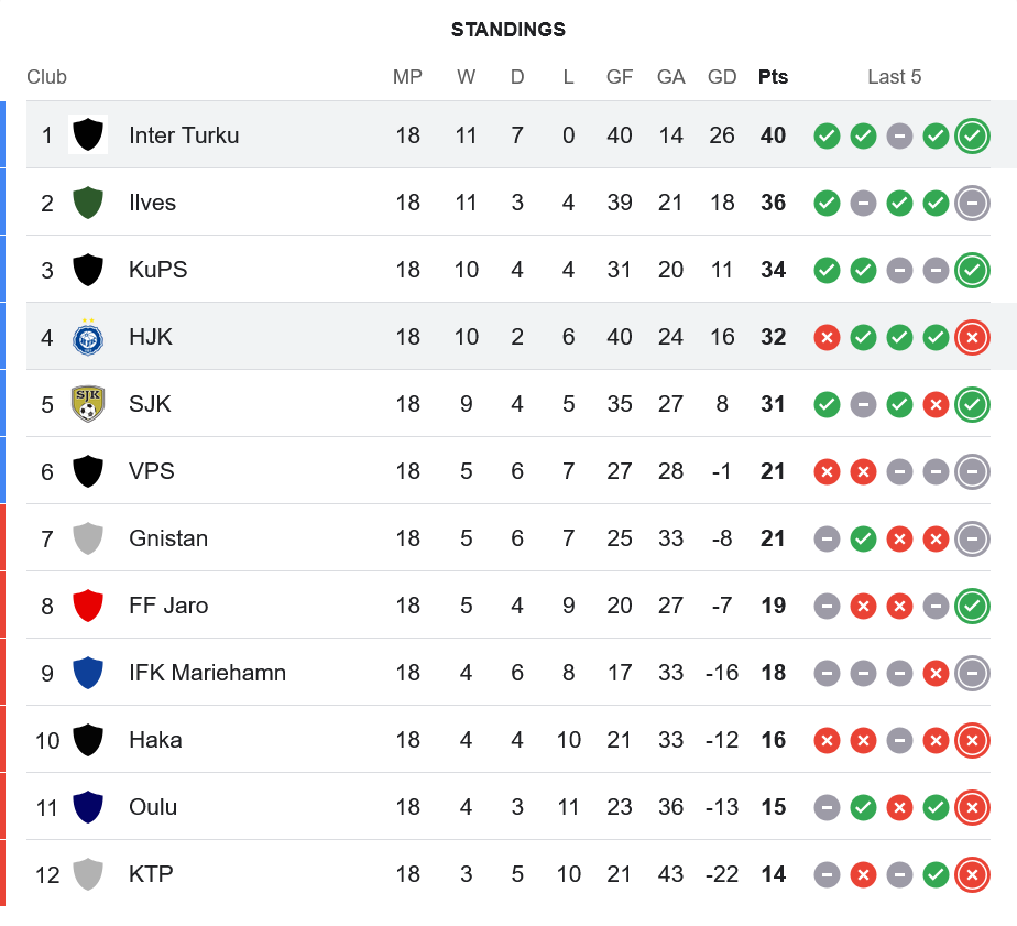 หลังจบแมตช์นี้ อินเตอร์ ตูร์คู เก็บเพิ่มเป็น 40 คะแนนจาก 18 นัด รั้งจ่าฝูงอย่างเหนียวแน่น และหนีห่างอันดับ 2 อย่างอิลเวสออกไปเป็น 4 คะแนนเต็ม ขณะที่ HJK รั้งอันดับ 4 มีอยู่ 32 คะแนน และโดนกระแสความร้อนแรงของท็อปทรีทิ้งห่างไปอีก