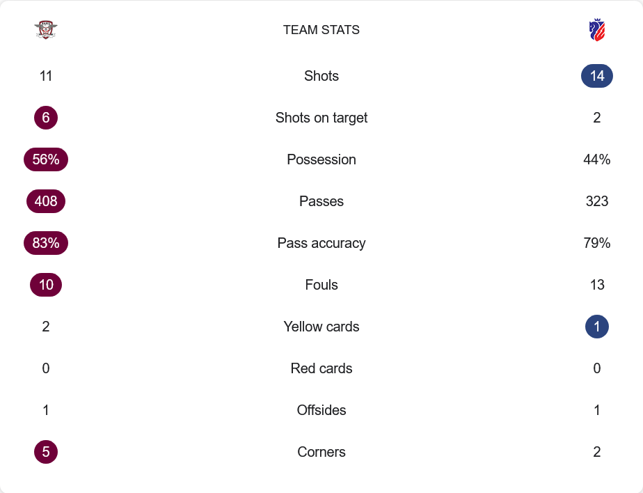 ราปิดครองบอล 56% เหนือกว่าโบโตซานี่ที่มี 44% เกมนี้ราปิดจบสกอร์ทั้งหมด 11 ครั้ง เข้ากรอบ 6 ส่วนทีมเยือนมีโอกาสยิง 14 ครั้ง เข้ากรอบเพียง 2 จังหวะเท่านั้น ด้านจำนวนการผ่านบอล ราปิดทำได้ 408 ครั้ง ความแม่นยำ 83% ขณะที่โบโตซานี่ผ่านบอล 323 ครั้ง แม่นยำ 79% เกมค่อนข้างใกล้เคียงในช่วงแรก แต่การเปลี่ยนตัวที่เฉียบขาดของราปิดทำให้รูปเกมเปลี่ยนทันที และเจ้าบ้านสามารถคอนโทรลเกมได้ในครึ่งหลัง