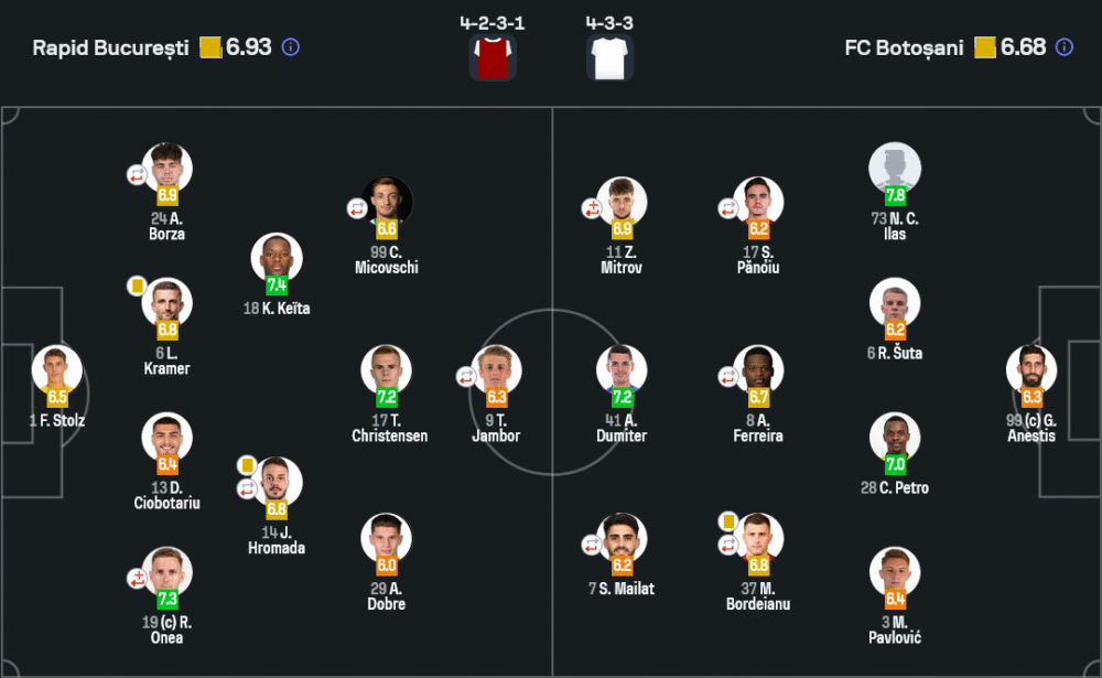 รูปเกมของราปิด บูคาเรสต์ ใช้แผน 4-2-3-1 ที่เน้นการเคลื่อนบอลไวจากแดนกลางขึ้นสู่สามแนวรุก โดยมี คาดีร์ เคอิต้า เป็นจุดเชื่อมบอลสำคัญและยืนได้โดดเด่น ขณะที่การเปลี่ยนตัว อองตวน บาโรอัง ลงมาในช่วงครึ่งหลัง ถือเป็นการแก้เกมที่พลิกผลการแข่งขันโดยแท้ ฝั่งโบโตซานี่เลือกใช้ 4-3-3 ที่เน้นความเร็วริมเส้นและการกดสวนกลับ แต่ขาดความเฉียบขาดในแดนสุดท้าย แม้จะมีจังหวะโต้ได้น่ากลัวบ้างแต่ยังไม่คมพอ วิเคราะห์บอล แล้วราปิดยังดูมีระบบมากกว่าและปรับเกมรับมือแรงกดดันได้ดีกว่าอย่างชัดเจน