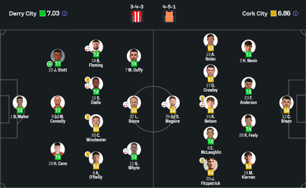 Jamie Stott (เดอร์รี่ ซิตี้) – เซ็นเตอร์ฮาล์ฟที่ยืนเกมรับได้อย่างมั่นคง อ่านเกมขาดและตัดบอลได้หลายครั้ง ช่วยทีมเก็บคลีนชีต แม้จะไม่ได้ชัยชนะ แต่ผลงานส่วนตัวโดดเด่นจนได้รับเรตติ้งสูงสุดในเกม