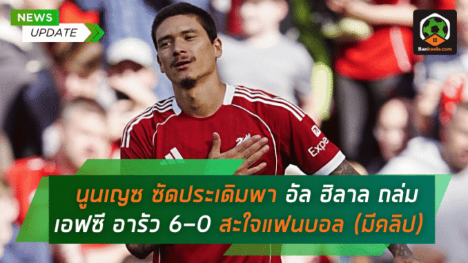 และในนาทีที่ 89 นูนเญซก็ปลดล็อกได้อย่างสวยงาม เมื่อวิ่งสอดไปเก็บบอลยาวทางฝั่งขวาในกรอบเขตโทษ ก่อนซัดมุมแคบด้วยเท้าขวา บอลพุ่งเสียบเสาอย่างเฉียบคม กลายเป็นประตูปิดกล่องให้ อัล ฮิลาล ถล่มคู่แข่งแบบขาดลอย 6-0 พร้อมเสียงเฮดังกระหึ่มทั่วสนาม